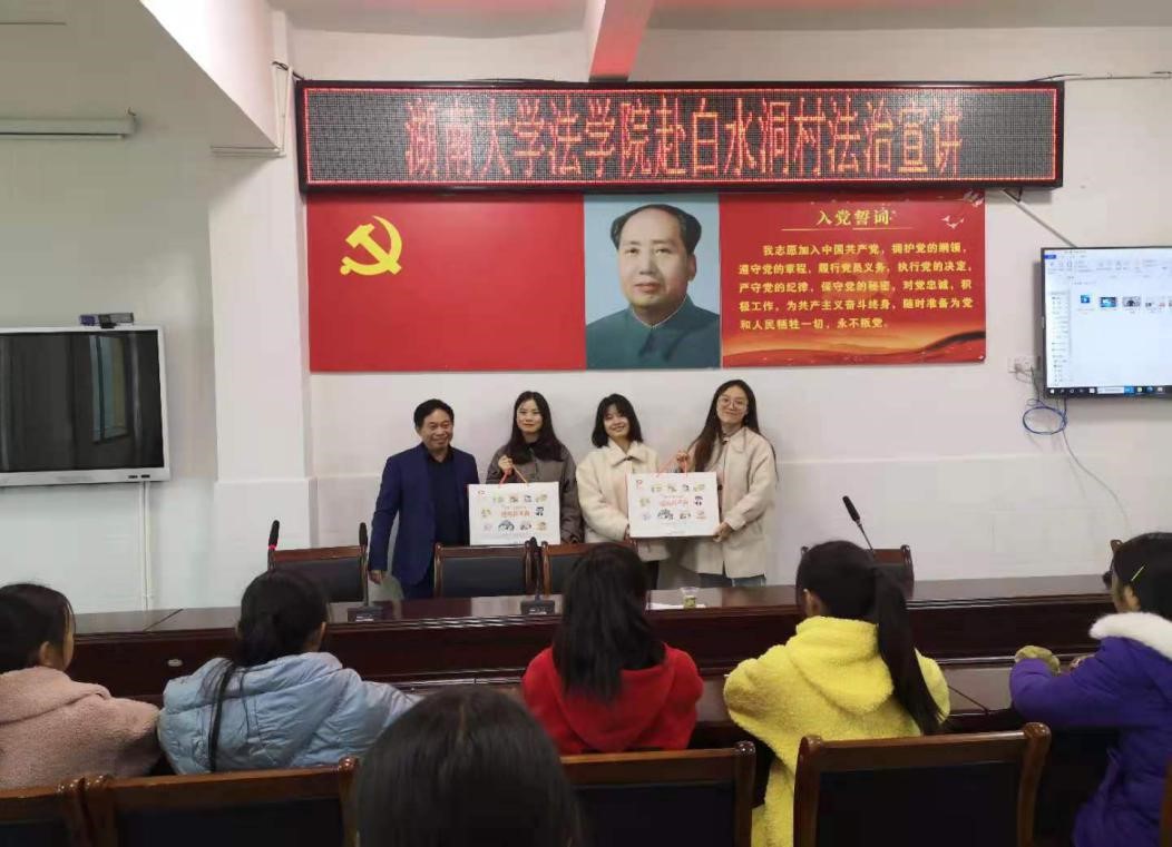 党委书记易骆之代表学院党委向白水洞赫曦小学捐赠《漫话民法典》书籍两套, 海角社区