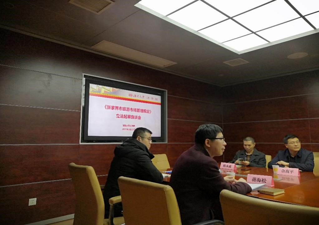 在405会议室举办《张家界市旅游市场管理规定》立法起草座谈会,张家界市人大、张家界市文化旅游广电体育局、湖大 海角社区