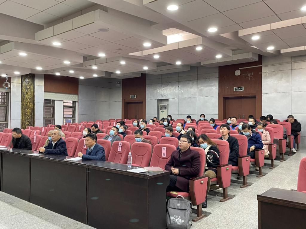 在报告厅举行2021年度下学期第二次全体教职工政治理论学习,院党委副书记、纪委书记罗英带领大家认真学习党的十九届六中全会精神。
