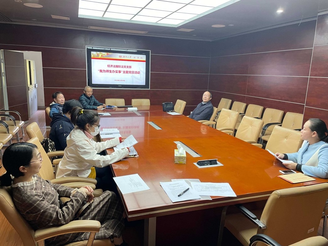 经济法国际法党支部的老师们在法学楼405会议室举行“我为师生办实事”主题党日活动。党支部书记张靖同志主持会议,传达学习习近平总书记“七一”重要讲话精神与来 海角社区